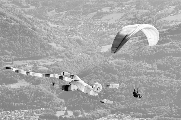 来自四川的滑翔伞运动员朱明智今年第一次参加法国伊卡洛斯飞行节。在化装飞行环节,他表演的是国家非物质文化遗产川剧变脸。“伊卡洛斯飞行节在我们的圈子里被称为‘滑翔伞的奥斯卡’,在这个盛大的节日里我想把我们国家的传统文化和滑翔伞这种新潮的运动结合起来,向外国人展示我们这项值得骄傲的技艺,也借机为变脸绝活的传承做出一点贡献。”朱明智介绍说。