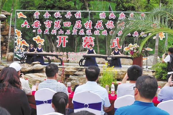 本报讯 满山丹桂醉游客,画廊深处美景多。安徽省六安市第四届桂花旅游文化节暨大别山花漾玻璃桥开业典礼于9月22日在大别山石窟风景区内正式拉开序幕。本次活动以“赏金秋丹桂,游石窟美景,走花漾玻璃桥”为主题,石窟玻璃桥也在当天正式对外开放,现场游客除了可以游石窟美景、赏金秋丹桂,还能在现场感受狮舞迎宾、古筝演奏、风情演绎、歌伴舞、乐队表演、空中婚礼等精彩表演。