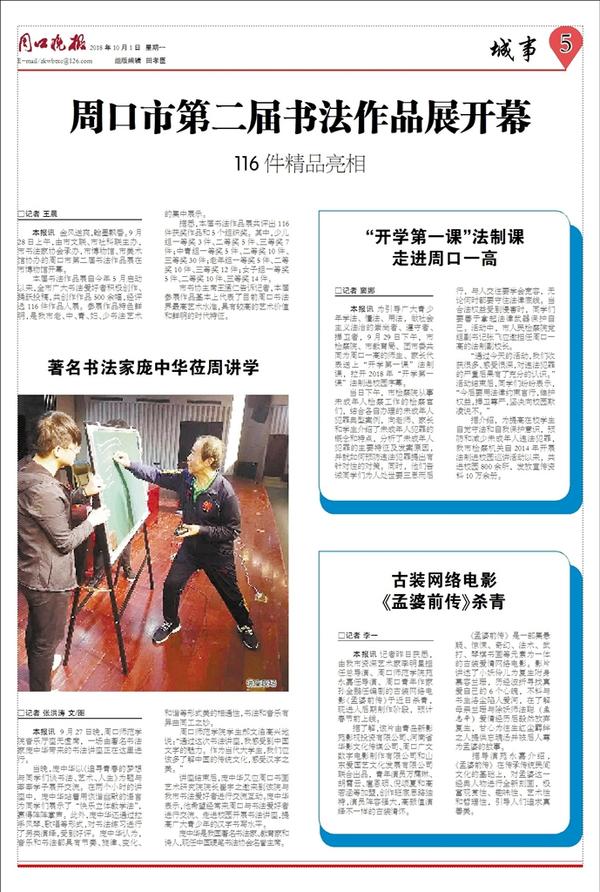 本报讯 9月27日晚,周口师范学院音乐厅座无虚席,一场由著名书法家庞中华带来的书法讲座正在这里进行。