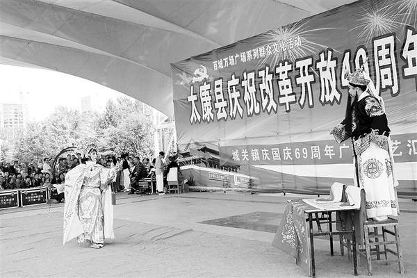 据了解,为丰富全县人民群众的节日文化生活,助力脱贫攻坚,从10月1日起,太康县委宣传部、县文广新局联合举办的“庆祝改革开放40周年暨国庆文艺会演”在县人民广场拉开帷幕。本次会演历时5天,节目涵盖小品、戏曲、坠子、琴书以及道情戏等,精彩纷呈,好戏连台,为市民奉上了一场场文化盛宴。