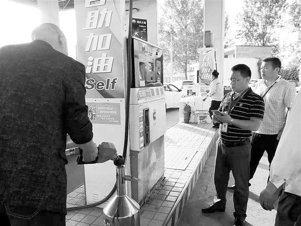 本报讯 10月4日,周口市质量技术监督稽查大队执法人员对市区的加油站突击检查(如图)。