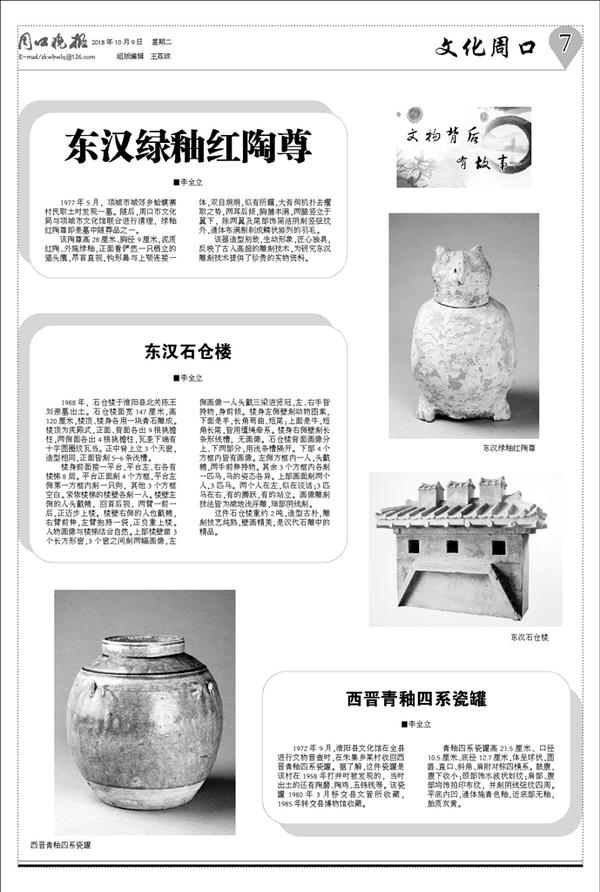 1972年9月,淮阳县文化馆在全县进行文物普查时,在朱集乡某村收回西晋青釉四系瓷罐。据了解,这件瓷罐是该村在1958年打井时被发现的,当时出土的还有陶磨、陶鸡、五铢钱等。该瓷罐1980年3月移交县文管所收藏,1985年转交县博物馆收藏。