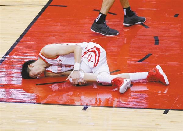 10月9日,休斯敦火箭队球员周琦在比赛中左膝受伤。