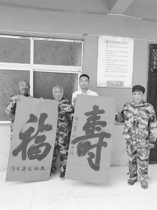 郸城县卫计委驻虎岗乡虎岗行政村第一书记王忠朴,是郸城县书法协会副主席兼秘书长,在他的牵线下,郸城县书法协会主席巴云山带领10多名书法协会会员前来助阵,与敬老院里懂书法的老人一起挥毫泼墨。