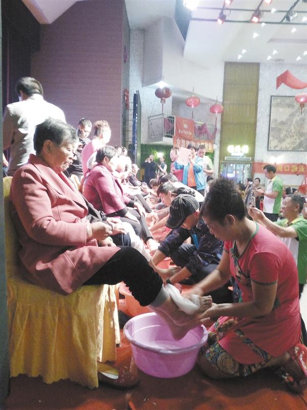 10月16日上午,在重阳节到来之际,川汇区总工会联合市游泳协会举办了“九九重阳节 浓浓敬老情”活动,川汇区25位老人代表接受了自己孩子的祝福。 记者 张志新 摄