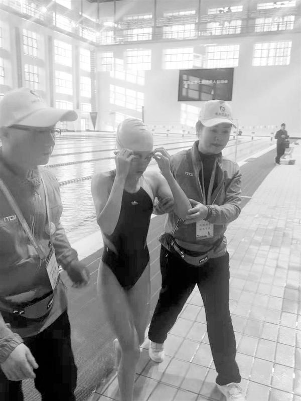 10月22日至24日,在省第七届残疾人运动会游泳比赛期间,来自周口萤火虫公益的30名志愿者全程参与了服务。周口萤火虫公益志愿者热情周到的服务,赢得了参赛选手的称赞。图为周口萤火虫公益志愿者搀扶参赛选手行走。