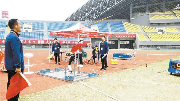 10月25日上午,省第七届残运会标枪比赛在市体育中心体育场进行。在标枪赛场,一些下肢残疾的女运动员,通过一些特殊器械辅助投掷标枪。虽然在成绩上和其他组运动员有差距,但她们挑战自我的勇气,值得肯定。