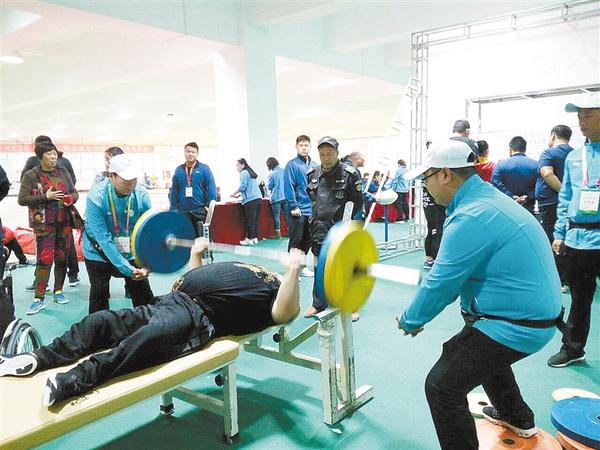 在省第七届残疾人运动会举重比赛现场,每当举重运动员进行赛前热身时,总会有志愿者把双手紧握一起,分别站在杠铃横杠的两头,做出空手托举的动作,并随着横杠上下移动而移动双手。之所以这么做,为的是在举重运动员失手时,志愿者可以瞬间将杠铃托起,使运动员不受伤害。