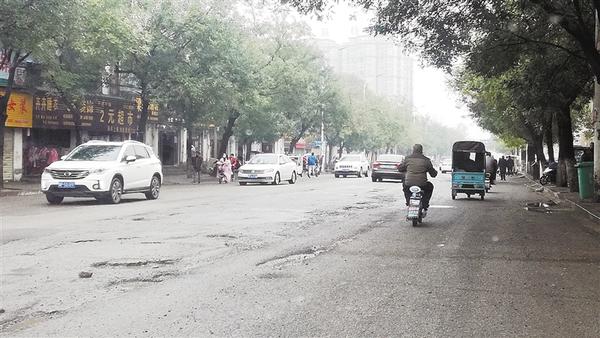 11月8日,记者现场采访发现,中州大道和人和街交叉口以北路段,路面沥青剥离脱落、布满大大小小的坑,碎石子散落满地,车辆经过时,都不得不减速绕行。