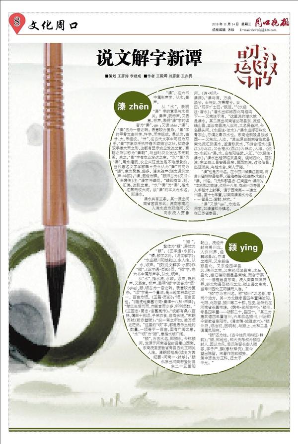 “颍”,繁体为“潁”,异体为“颕”。《正字通·水部》:“澃,颍字之伪。《说文解字》:“水出颍川阳城乾山,东入淮。从水,顷声。”按《说文解字·水部》作“颍”,《正字通·页部》同。“颍”字,在六书中属形声字,从水,顷声。