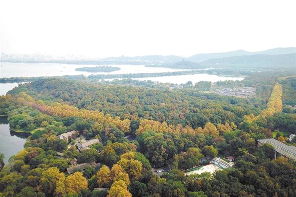 时值初冬,杭州市西湖景区层林尽染,色彩斑斓,别有一番韵味。