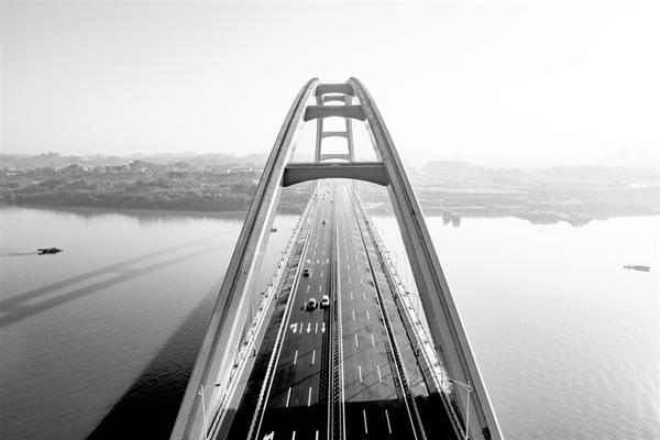 当日,广西柳州官塘大桥建成通车。柳州官塘大桥横跨柳江,水中不设桥墩,跨度达457米,整桥主线全长1155.5米,桥面由148根吊索与上方的两条拱座相连。 新华社发