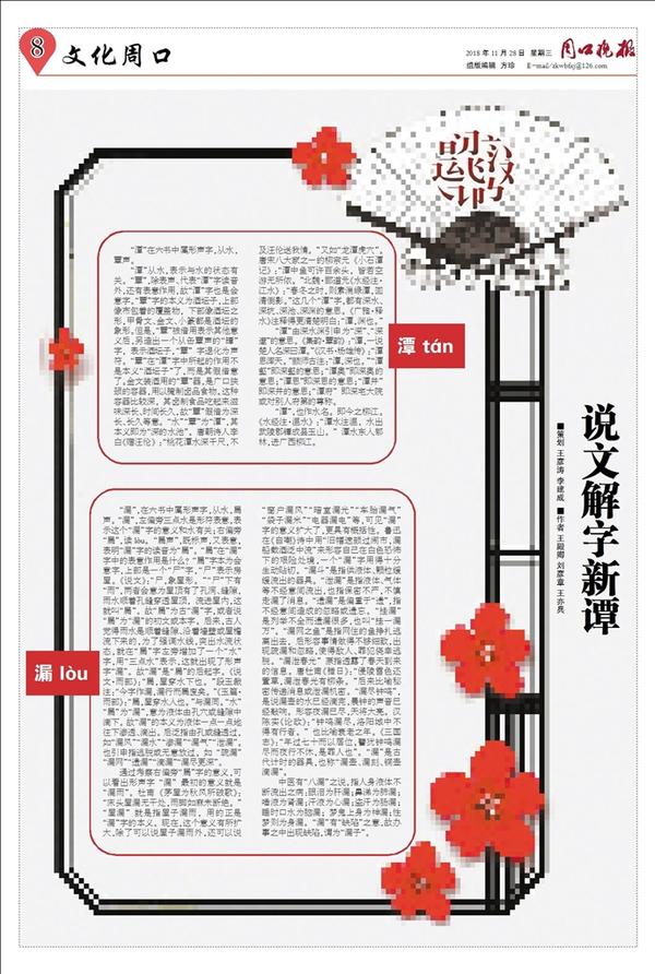 “潭”在六书中属形声字,从水,覃声。