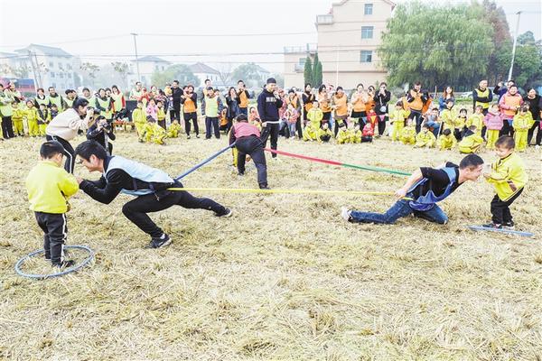 当日,浙江省长兴县画溪街道包桥幼儿园的孩子和家长在收获后的稻田内,参加“乡村稻田游戏”活动,让孩子和家长在参与游戏的过程中,增强健康运动意识和亲子互动配合,同时感受来自家乡的田园之美。新华社记者 徐昱 摄