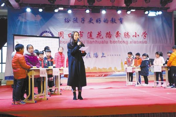 11月30日下午,周口市莲花路奔腾小学举办诗词大赛,一场关于诗词的较量在学生中激情上演。各年级段小选手胸有成竹,镇定自若,对答如流,台下小观众加油鼓掌,气氛热烈有序。经过角逐,现场公布了获奖名次。