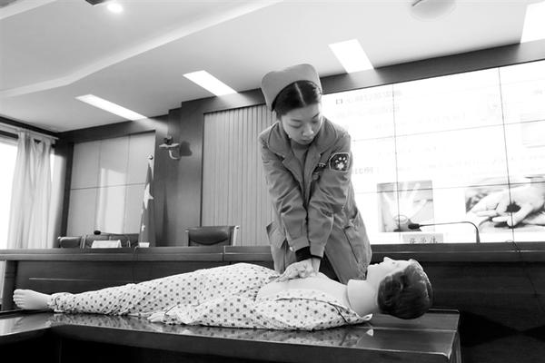 最后,宣讲团成员利用人体模型现场演示了心肺复苏急救的步骤(如图)。
