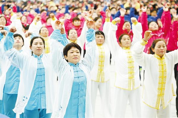 当日,安徽省亳州市组织开展习练五禽戏活动,万余名五禽戏爱好者齐聚主习练场——亳州体育馆广场,同时习练健身气功五禽戏。全市具备条件的1000多所城乡学校师生分别同时习练小学、初中、高中三个版本的校园五禽戏,总习练人数突破50万人。新华社发