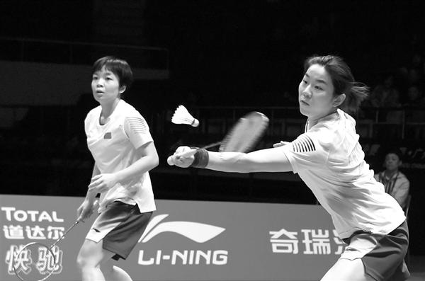 图为当日中国选手陈清晨/贾一凡(右)在比赛中。