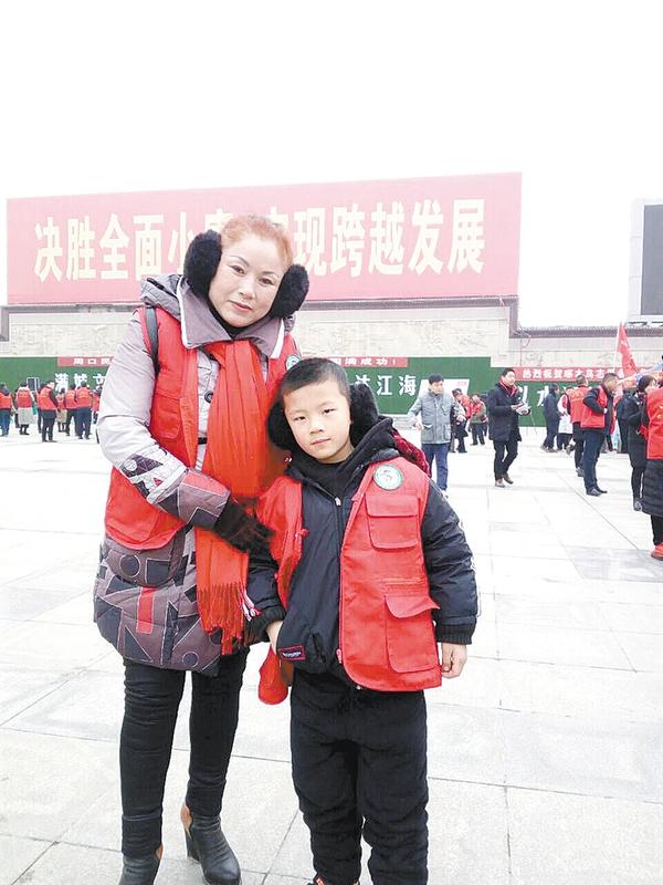 原来,这是今年60岁的陈继红带着7岁的孙子来参加当天的公益活动(如图)。