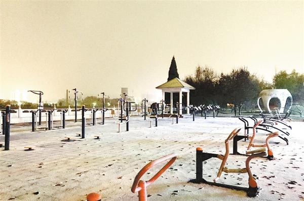 2018年冬天的第一场大雪,把周口市中心城区沙颍河风景区装扮得清新雅致,别有一番风味。花草、绿植、雕塑、亭台、环廊、步道乃至健身器材,在雪的映衬下,都显得通透而有灵性,让人欣喜非常。