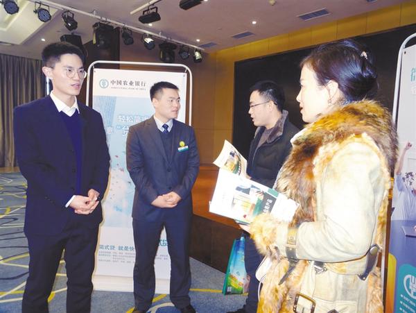 12月14日,农行周口分行召开金融产品推介会,140多家民营企业代表参加。该行2017年和2018年贷款投放分别完成市委、市政府年度目标146.4%和112.3%,被市委、市政府评为“信贷投放先进单位”“金融扶贫先进单位”。图为农行客户经理向企业代表讲解金融知识。 记者 徐如景 通讯员 陈怀立 吴建明 摄