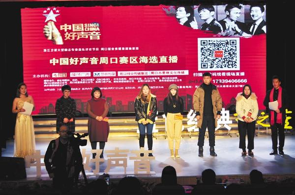 本报讯 12月22日,由浙江卫视、周口报业传媒集团主办,周口报业传媒文化体育有限公司、周口市星璀文化传媒有限公司承办的2019《中国好声音》全国海选周口赛区庆祝改革开放40周年专场海选在市文化馆举行,共有21名选手参加比拼,最终有8名选手被淘汰,13名选手顺利晋级。