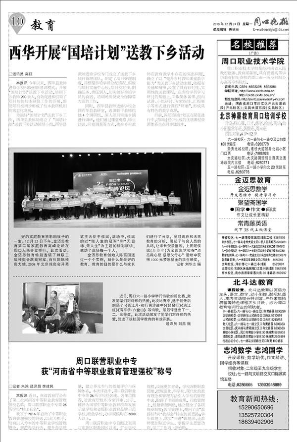 本报讯 近日,我省教育厅公布了第二批河南省中等职业教育管理强校名单,周口联营职业中专等26所学校“榜上有名”。