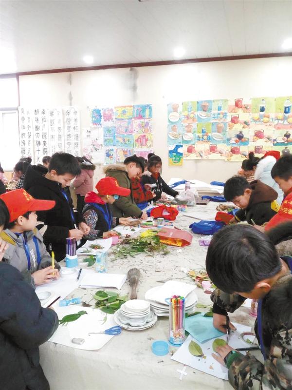 本报讯 12月15日上午,50余名西华小记者来到女娲文化书画院,在参观书画院之后,参加巧手拼贴树叶画活动。