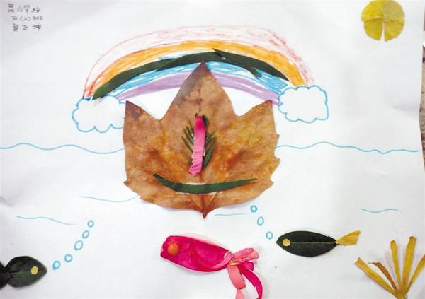 活动中,小记者独立自主,开动脑筋,拿出提前准备好的剪刀、彩笔、树叶等工具,认真拼贴树叶画。有的小记者利用树叶的自然形状粘贴出小动物,有的小记者用剪刀裁剪出需要的形状来配合图画,有的小记者用彩色画笔和串珠等小物品在白纸的空白处和树叶上进行装饰。不一会儿,小记者拼贴出了一幅幅色彩斑斓的生动图画,折射出他们无限的创造力和丰富的想象力。“制作树叶粘贴画可以锻炼孩子的想象力、动手能力和绘画能力,可以说在制作的过程中,让孩子们发现大自然的奇妙之处,也激发了孩子对大自然的兴趣。”小记者丁宁的家长说。
