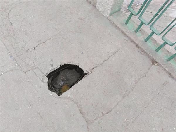 12月24日,啄木鸟志愿者向记者反映:周口中心城区中州大道桥桥南东侧人行道上有一个“陷阱”。记者经过现场查看,发现那是一个塌陷洞,洞深约30厘米,宽约20厘米,行人看到该洞纷纷绕行。啄木鸟志愿者呼吁相关部门尽快采取措施,排除这个安全隐患。记者 李立 摄