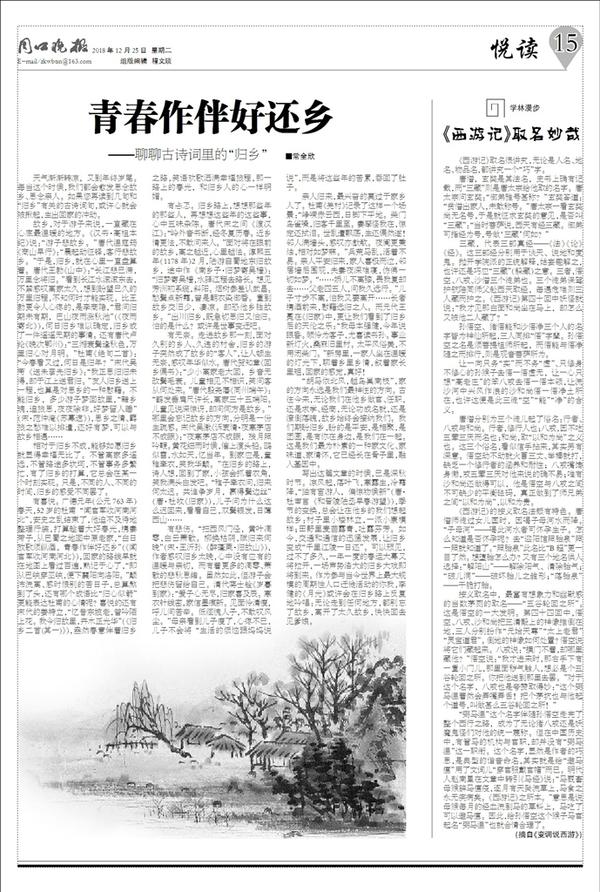 有无奈。走进故乡那一刻,面对久别的乡人、久违的村舍,归乡的游子突然成了故乡的“客人”,让人顿生无奈,感叹年华似水。唐代贺知章《回乡偶书》:“少小离家老大回,乡音无改鬓毛衰。儿童相见不相识,笑问客从何处来。”唐代殷尧藩《同州端午》:“鹤发垂肩尺许长,离家三十五端阳。儿童见说深惊讶,却问何方是故乡。”哪里会忘记故乡的方向,分明是一份生疏感。宋代吴激《诉衷情·夜寒茅店不成眠》:“夜寒茅店不成眠,残月照吟鞭。黄花细雨时候,催上渡头船。鸥似雪,水如天,忆当年。到家应是,童稚牵衣,笑我华颠。”在归乡的路上,诗人想,回到了家,小孩会抓着衣角,笑我满头白发吧。“稚子牵衣问,归来何太迟。共谁争岁月,赢得鬓边丝”(唐·杜牧《归家》),儿子问为什么这么迟回来,看看自己,双鬓银发,日薄西山……