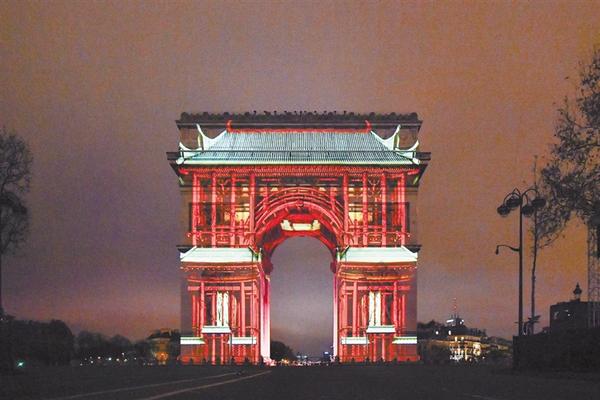 法国巴黎以在凯旋门打上投影灯光和放烟火的方式迎接新年的到来。