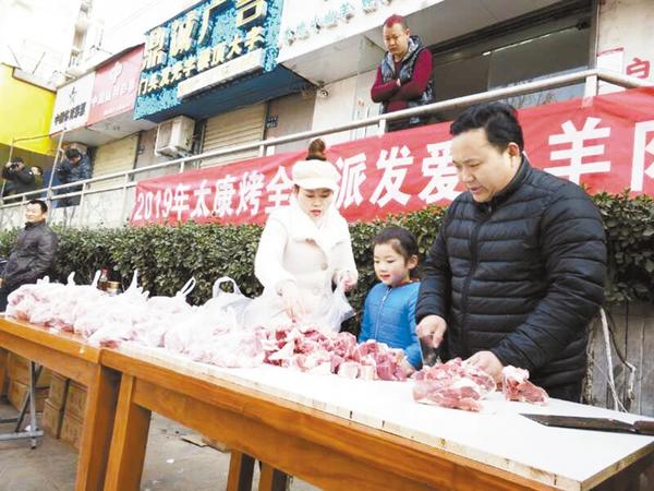 孙合理(右一)忙着切羊肉。记者 马治卫 通讯员 连祥工 摄