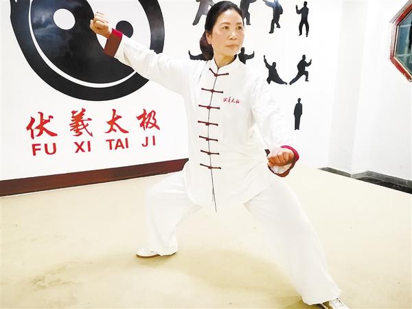 戚跃菊, 56岁,淮阳县人。她退休后开始练习伏羲太极拳,多次参加县、市太极拳比赛,每次都获一等奖;连续3年参加省第十一届、第十二届、第十三届的中原武术大赛,皆获剑类、拳类一等奖;2018年10月参加全国武术大赛,荣获拳类、剑类三等奖。图为戚跃菊在练习伏羲太极拳。通讯员 张然 摄