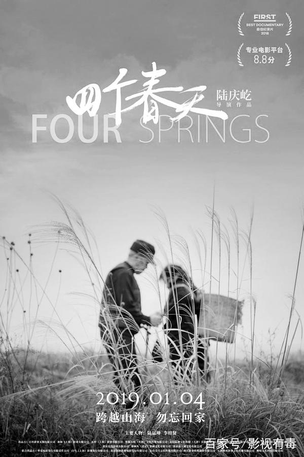 本报综合消息 陆庆屹执导的《四个春天》纪录片1月4日(今日)起全国公映。导演陆庆屹表示,对于自己来说,拍摄这部纪录片的过程非常艰难,因为片中记录的对象就是自己的家人,其中在2014年拍摄时,遇到自己的姐姐因病去世,家庭遭遇重大变故,但在这样的打击下,他依然完成了拍摄,“是父母对于生活的坚强和乐观感染了我,我希望不论我们走到天涯海角,始终不忘心中柔软,跨越山海,勿忘回家。”