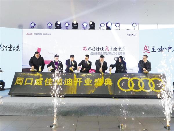 本报讯 1月7日上午, 河南威佳汽车集团在周口区域组建的一汽大众奥迪店——周口威佳奥迪店隆重开业。来自周口区域的特邀嘉宾、新老客户及新闻媒体记者共同参加了开业仪式。