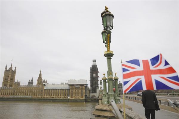 当地时间1月7日,英国国旗在首都伦敦的议会大厦附近飘扬。