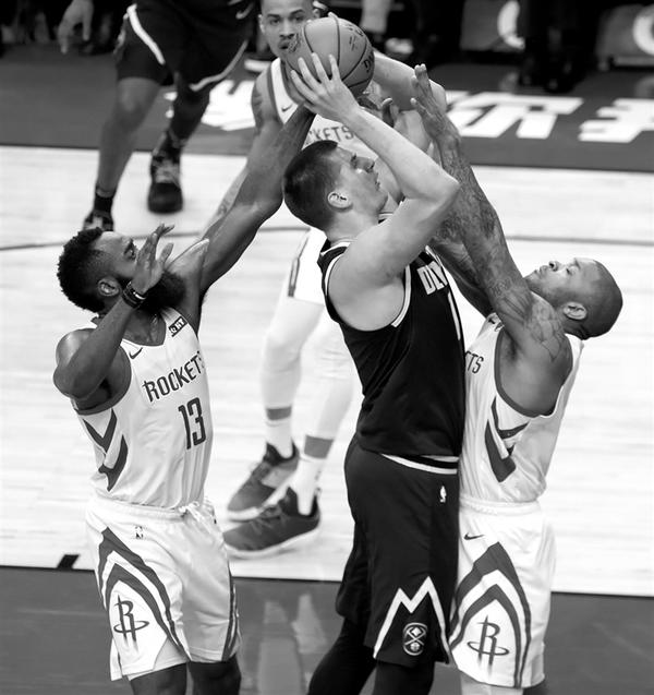 易边再战,掘金队的约基奇开启了个人攻击模式,篮下连连取分,在他的带领下掘金队打出一波9∶3的小高潮,将比分追至89∶96。末节上来,格林和哈登相继命中3分,火箭队重新建立起两位数的领先优势,随着哈登在本节还剩4分32秒时再度飙中3分,比赛提前失去了悬念,最终火箭队以125∶113击败掘金队。
