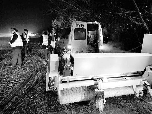 9日18时,积雪给车辆和行人造成了出行隐患。为此,市公路路产管理应急抢险中心立即启动雪天应急预案,出动20名工作人员、机械4台,撒工业盐2吨,开展应急除雪工作。在市公路路产管理应急抢险中心负责人秦华的组织下,市公路路产管理应急中心合理调配除雪物资、机械设备,相关工作人员对中心城区内的桥梁、易结冰路段的进行巡查,确保路面保畅保通。