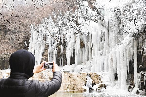 1月9日,游客在云台山景区拍摄冰瀑景观。