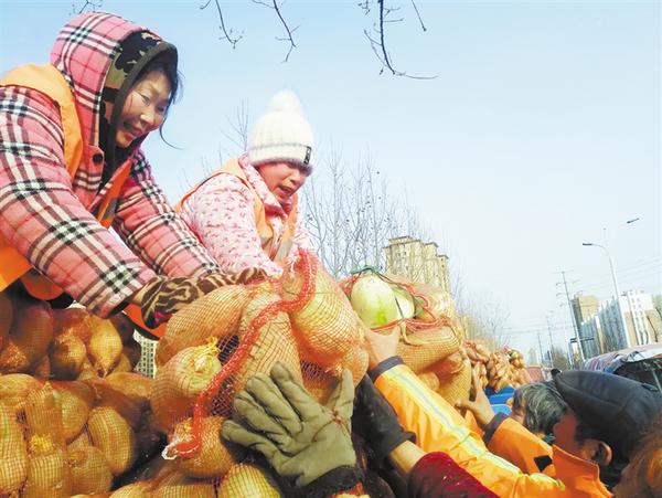 淮阳菜农种的萝卜滞销,周口市啄木鸟志愿者服务工作委员会组织爱心人士、企业单位认购25万斤“爱心萝卜”,并在1月14日~15日这两天集中对环卫工人进行发放。1月15日下午,来自川汇区的千余名环卫工人领到了11万斤从淮阳刘振屯乡张老家行政村田间地头刚刚采摘出来的“爱心萝卜”,感受到了冬日里的别样温暖。