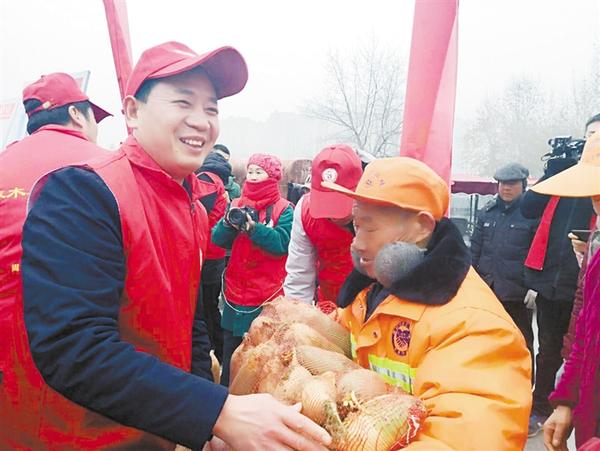 “这次周口厨具市场认购了10万斤‘爱心萝卜’送给环卫工人和弱势群体……我们有责任去帮助这些需要帮助的人。”1月15日下午,周口厨具市场董事长孙志超在厨具市场门口帮环卫工人抬萝卜(如图)。面对记者,他来不及多说,又去忙前忙后了。