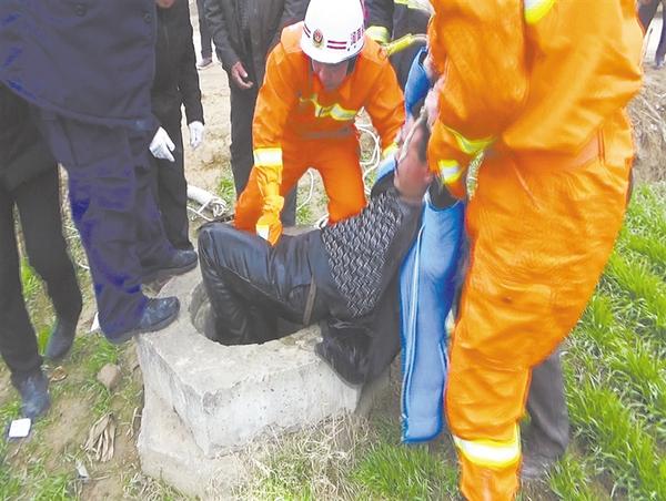 1月14日8时,接到群众报警后,淮阳县消防大队立即出动一辆抢险救援车、一辆水罐车和8名消防员前往救援。到达现场后,消防员发现该男子掉入的是一个没有盖子的灌溉井,井口直径约20厘米,井深约10米。围观的一位大娘告诉消防员,她晨练时听到有人喊救命,但因自己无力救援,便和其他村民一起拨打119报警。消防员到达现场时,该男子已在水中泡了一夜。