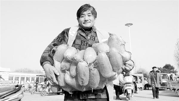 当日15时许,满载“爱心萝卜”的车辆到达周口公园南门的小广场后,啄木鸟志愿者纷纷帮助菜农分发“爱心萝卜”,领到萝卜的环卫工人一个个笑逐颜开。
