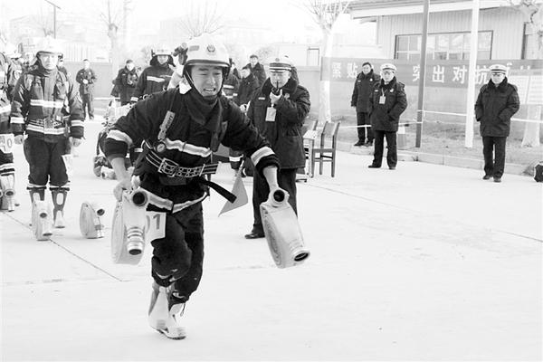 本报讯 绳索攀爬、负重上10楼、400米救人疏散物资、搬运重物折返跑……1月17日上午,来自郑州、开封、许昌、商丘、周口、航空港区的72名消防精英齐聚周口,亮绝活、秀奇招,经过激烈比拼,周口市消防支队代表队获得全省消防救援队伍中东部片区体能对抗赛团体第一名的好成绩。
