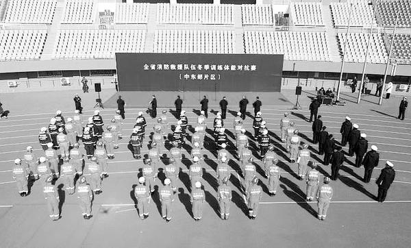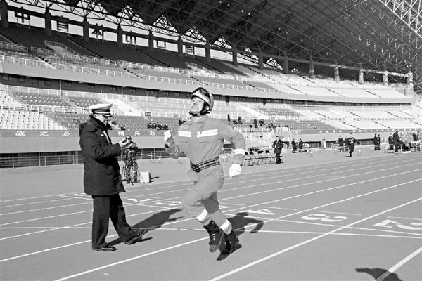 400米救人疏散物资、搬运重物折返跑这两个项目的比赛设置在市体育中心,这里的跑道更适合消防指战员奔跑。