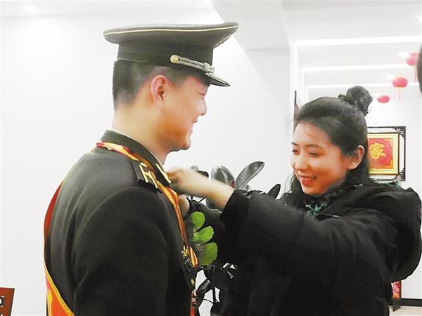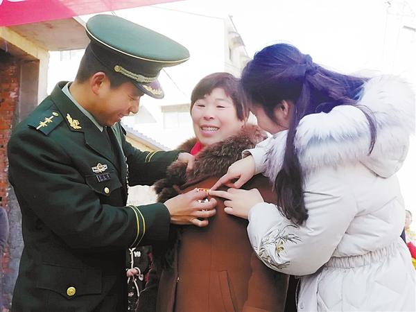 “爸爸,你的奖章真好看,我长大了也要当功臣。”在苏航家中,看着妈妈为爸爸整理绶带,小女儿迫不及待地爬到爸爸身上,摸摸这里,看看那里,稚嫩的童音引来大家齐声称赞。随后,军地领导共同将一块“功臣之家”牌匾挂在苏航家大门口。