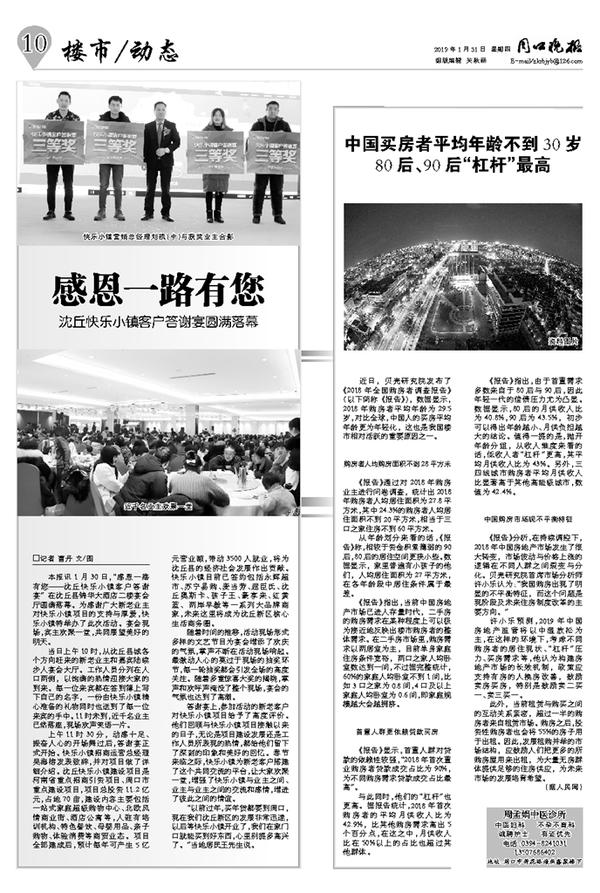 本报讯 1月30日,“感恩一路有您——沈丘快乐小镇客户答谢宴”在沈丘县锦华大酒店二楼宴会厅圆满落幕。为感谢广大新老业主对快乐小镇项目的支持与厚爱,快乐小镇特举办了此次活动。宴会现场,宾主欢聚一堂,共同展望美好的明天。