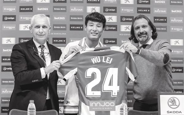 当日,加盟西甲西班牙人俱乐部的中国球员武磊首次在巴塞罗那与媒体及球迷见面。