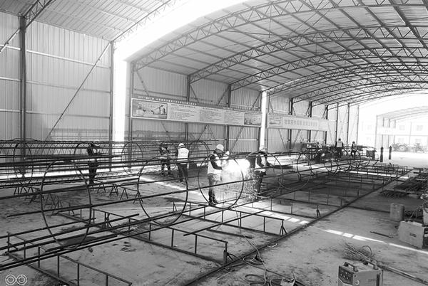 为确保我市百城提质重点项目中原路跨沙颍河大桥及道路打通工程目标进度,项目施工方春节期间放弃休假,全力按预期节点推进各项工作。图为施工人员在进行水上桩钢筋笼焊接作业工作。 记者 王映 摄